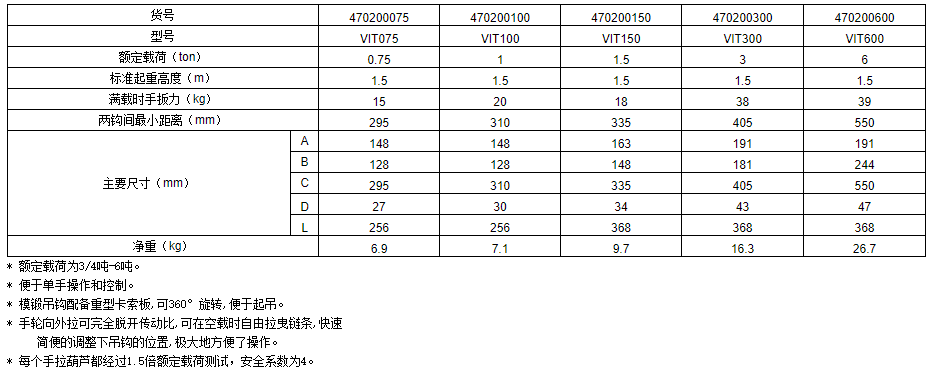 VIT-II型系列手板葫蘆